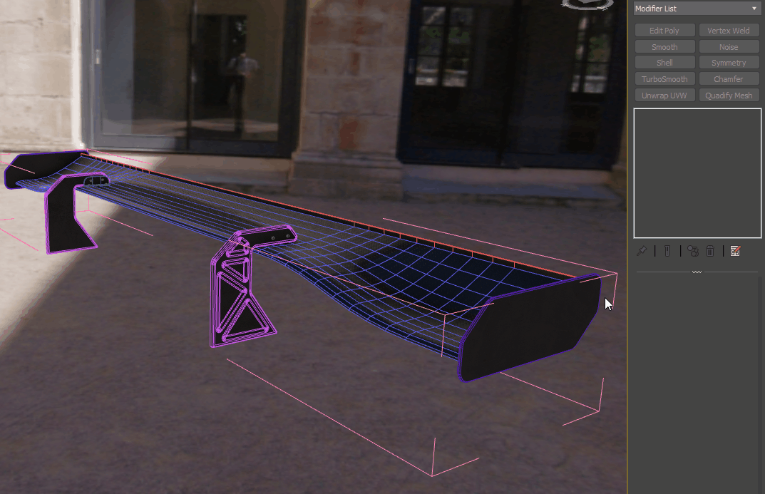 Most models are adjustable in some way (modifiable in max '21), have basic UV mapping and are separated for ease of usage and customization (wing, flap, endplate, legs, mounting, screws, etc.).